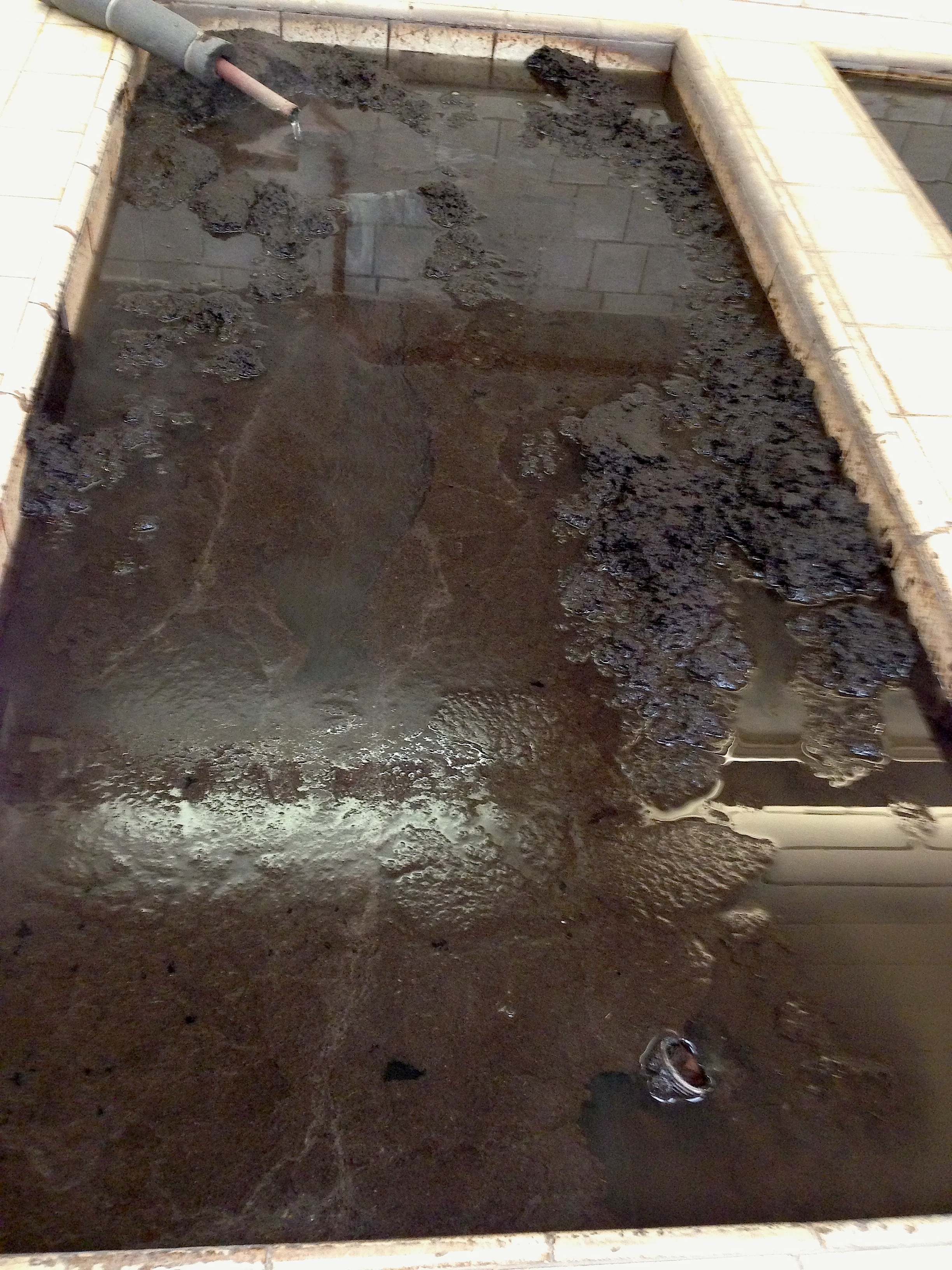 When you walk into the treatment room at Dr. Wilkinson’s, you smell the hot mud even before you see the giant tile vat. Dare I say it had a slight manure smell to it? It’s volcanic ash, peat, and spring water… no manure here, just mud. Hot mud.