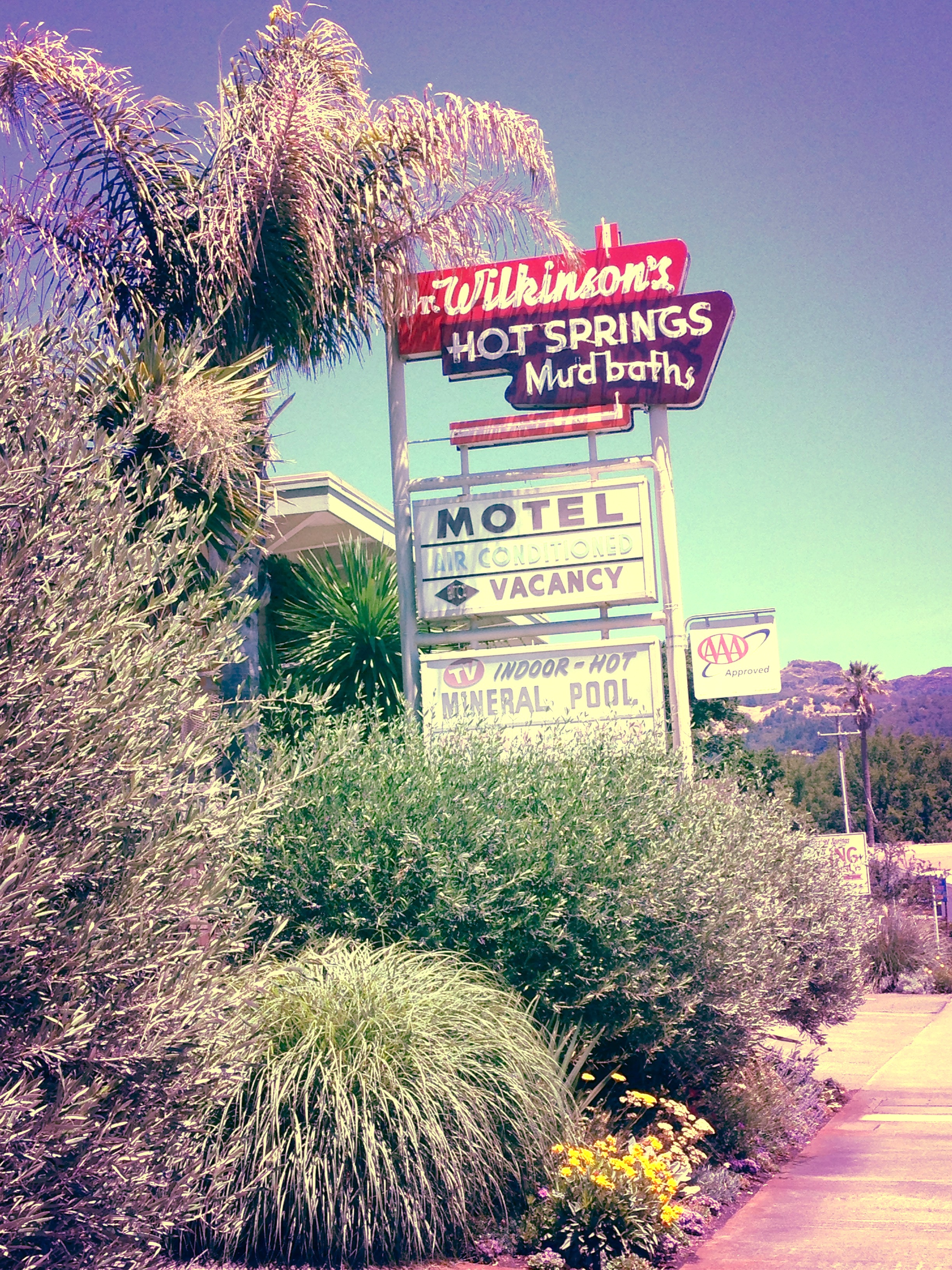 I went to meet an old and dear friend in Calistoga at Dr. Wilkinson’s Hot Springs Resort. I’ve heard about this place, always with the same asterisked statement: